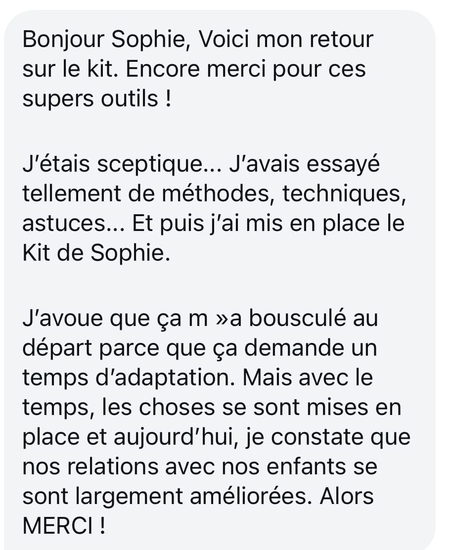 Et souvent… quand l’autre parent constate les résultats (moins de crises, plus de calme), il ou elle finit naturellement par adopter la méthode aussi 😉